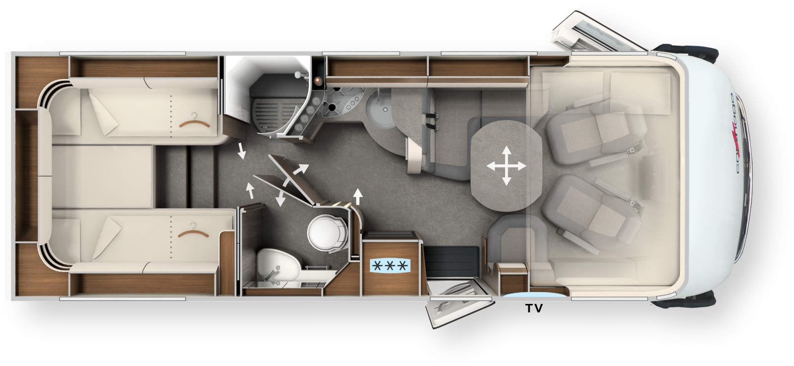 - TV-Paket Schlafraum (LE-Betten) bestehend aus: •Smart-LED-TV 24" Schlafraum, TV-Schrank bzw. Waschraumrückwand •TV-Schrank im Schlafraum mit TV-Auszugssystem und Anschluss-Set
